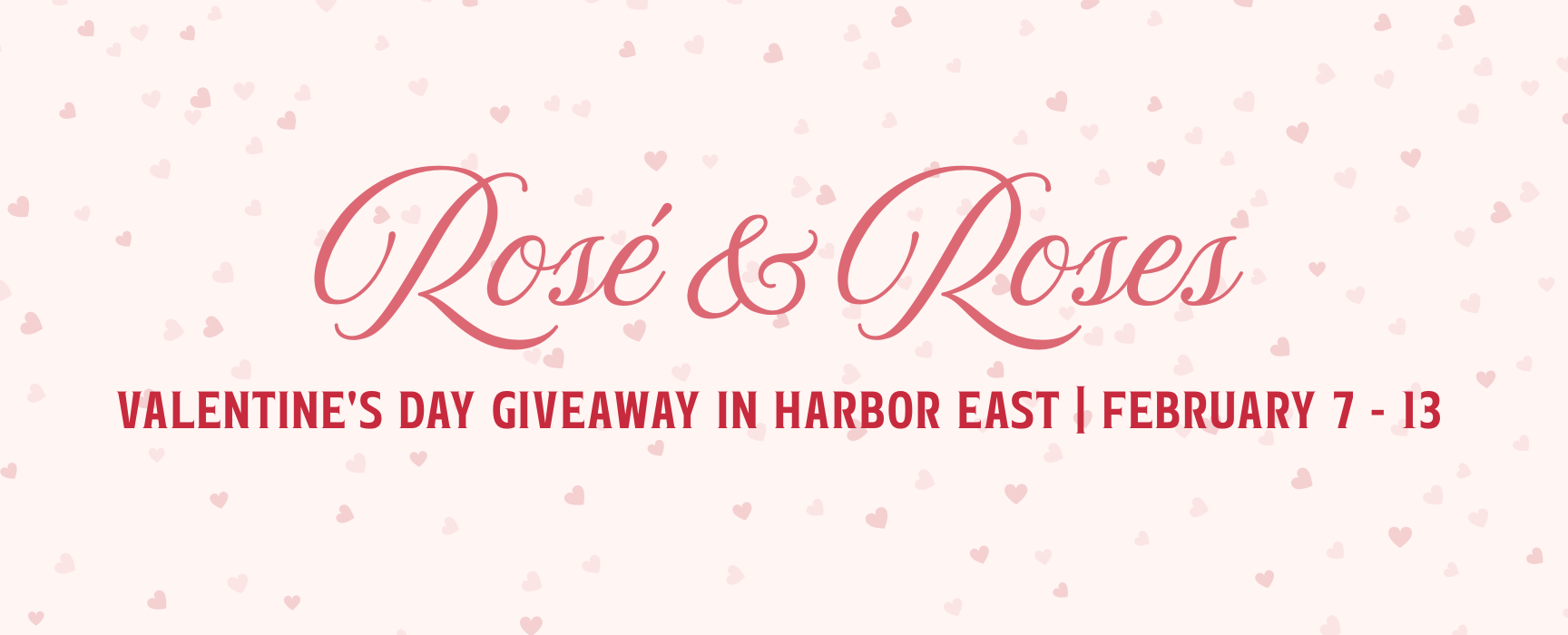 Rosé & Roses returns on Saturday, February 7 with complimentary wine and long-stemmed roses available at your favorite Harbor East retailers.