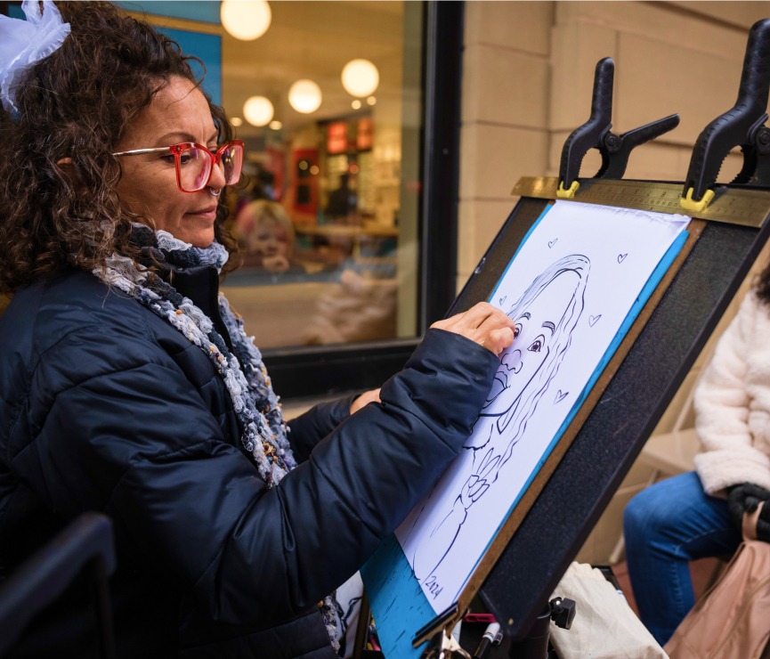 Join us for a round of carnival games, and then let our caricature artists work their magic. It’s the perfect stop for laughter, friendly competition, and a unique holiday memento to take home.
